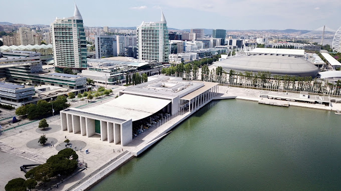 El Pabellón de Portugal para la Exposición Universal de 1998 sintetizó cuatro décadas de investigación formal. La cubierta de hormigón pretensado de 20 cm de espesor, curvada como un velamen, resolvió estructuralmente la necesidad de crear un gran espacio sombreado junto al Tajo. La plaza hundida bajo este "techo-líquido" establecía una relación cinética con el río, confirmando la capacidad de Siza para escalar su lenguaje a dimensiones monumentales sin perder humanidad.